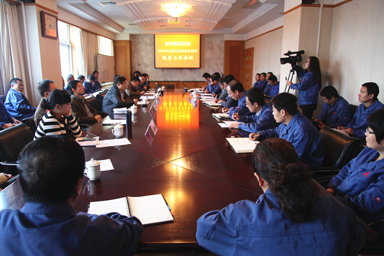 10月15日下午,根據(jù)2014年紀檢監(jiān)察巡查工作的安排,西電集團紀委來我公司開展2014年度紀檢監(jiān)察巡查工作。紀檢監(jiān)察巡查工作會議在公司科技大樓四樓大會議室召開。西電集團黨委常委、紀委書記白武勤,紀委副書記韓巍,紀委副書記、監(jiān)察部部長李江平,以及巡查工作組6名成員參加了會議,公司黨委副書記、紀委書記付宗喜,集團公司副總經(jīng)理岳永學,以及集團、股份公司相關單位負責人,共40余人參加了巡查工作會議。會議由岳永學同志主持。