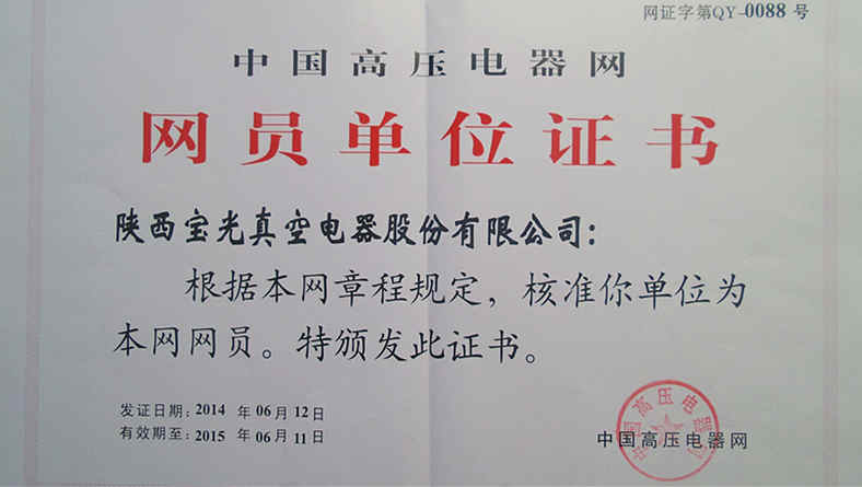 由西安高壓電器研究所主辦的中國高壓電器網(wǎng)經(jīng)過資格審查,于2014年6月份授予我公司為高壓電器會(huì)員單位。