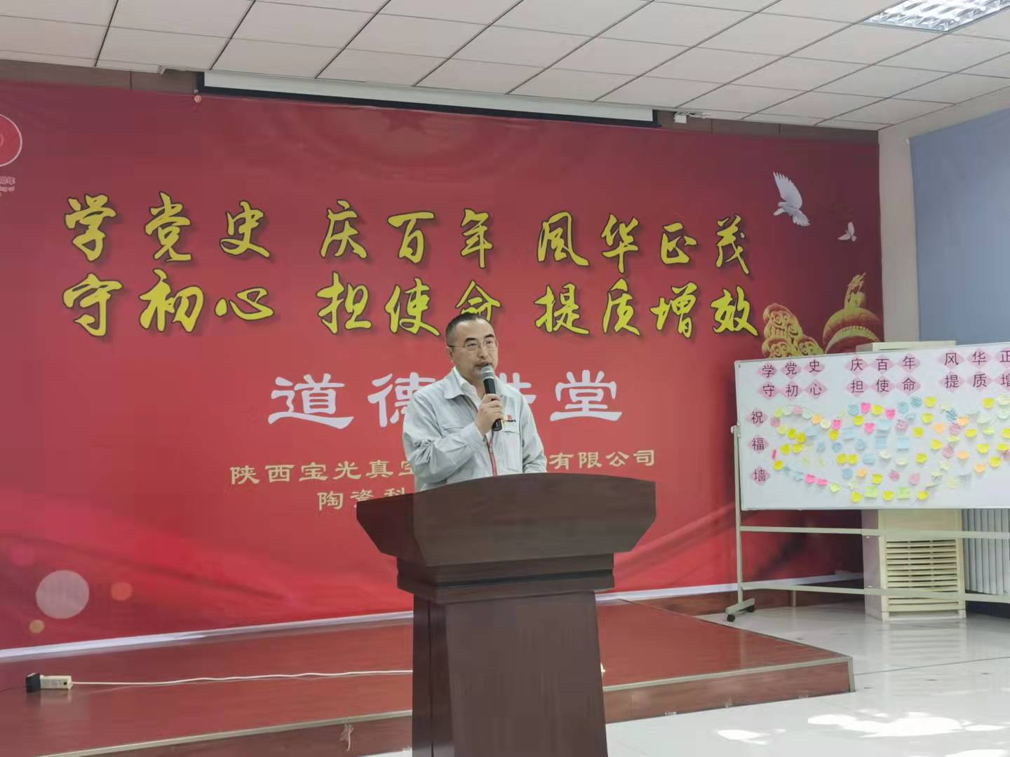 “唱支山歌給黨聽(tīng), 我把黨來(lái)比母親......”9月30日下午,在高昂激越、催人奮進(jìn)的歌聲中,由寶光股份黨委工作處主辦,陶瓷科技公司黨支部承辦的“學(xué)黨史、慶百年、風(fēng)華正茂; 守初心、擔(dān)使命、提質(zhì)增效”主題道德講堂盛大開(kāi)啟。寶光股份黨委書記、總經(jīng)理謝洪濤,寶光股份工會(huì)主席、紀(jì)委書記付宗喜,寶光股份副總經(jīng)理袁軍為應(yīng)邀出席活動(dòng)。