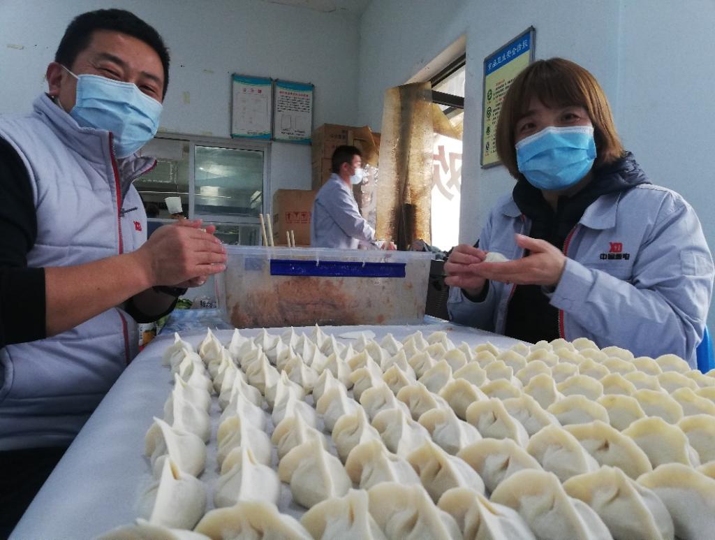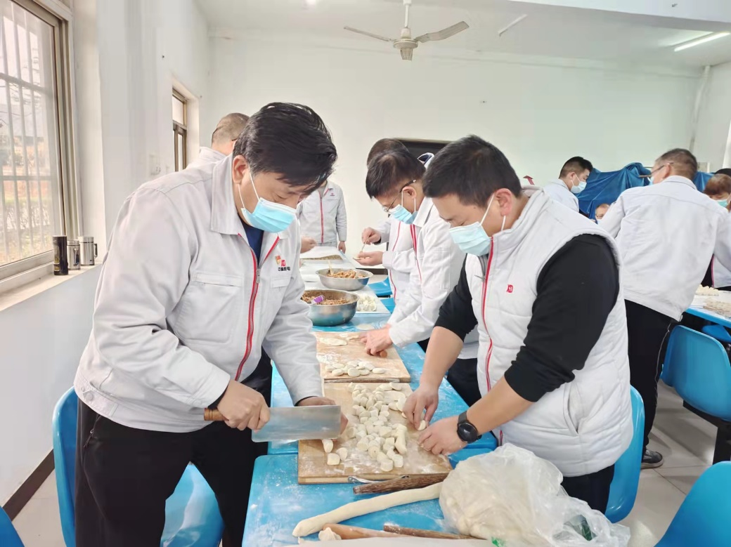 公司駐廠領(lǐng)導(dǎo)、一些干部職工緊張忙碌起來,有的搟有的包,場(chǎng)面溫馨感人,元寶形、月牙形,不同形狀的餃子整齊地排列在一起足有一萬多只,不僅分擔(dān)了后勤保障人員的工作壓力,還用實(shí)際行動(dòng)彰顯著嚴(yán)肅活潑的工作作風(fēng)和凝聚奮進(jìn)的精神品質(zhì)。好吃不過餃子,溫暖不過集體。在這個(gè)特殊時(shí)期能吃到手工水餃令人難忘,雖然暫時(shí)不能和家人、親友團(tuán)聚,但大家相互關(guān)心、相互鼓勵(lì)讓每位員工感受到了大家庭的溫暖,心底涌起一股股暖流。
