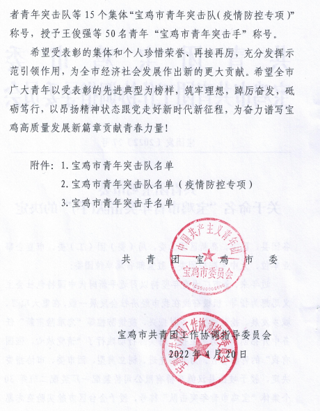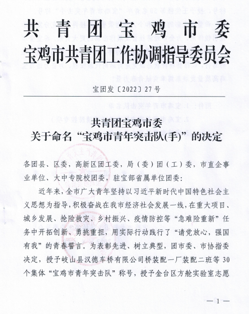 近日,從團(tuán)市委獲悉,寶光股份固封班組被授予“寶雞市青年突擊隊(duì)”榮譽(yù)稱號(hào)。