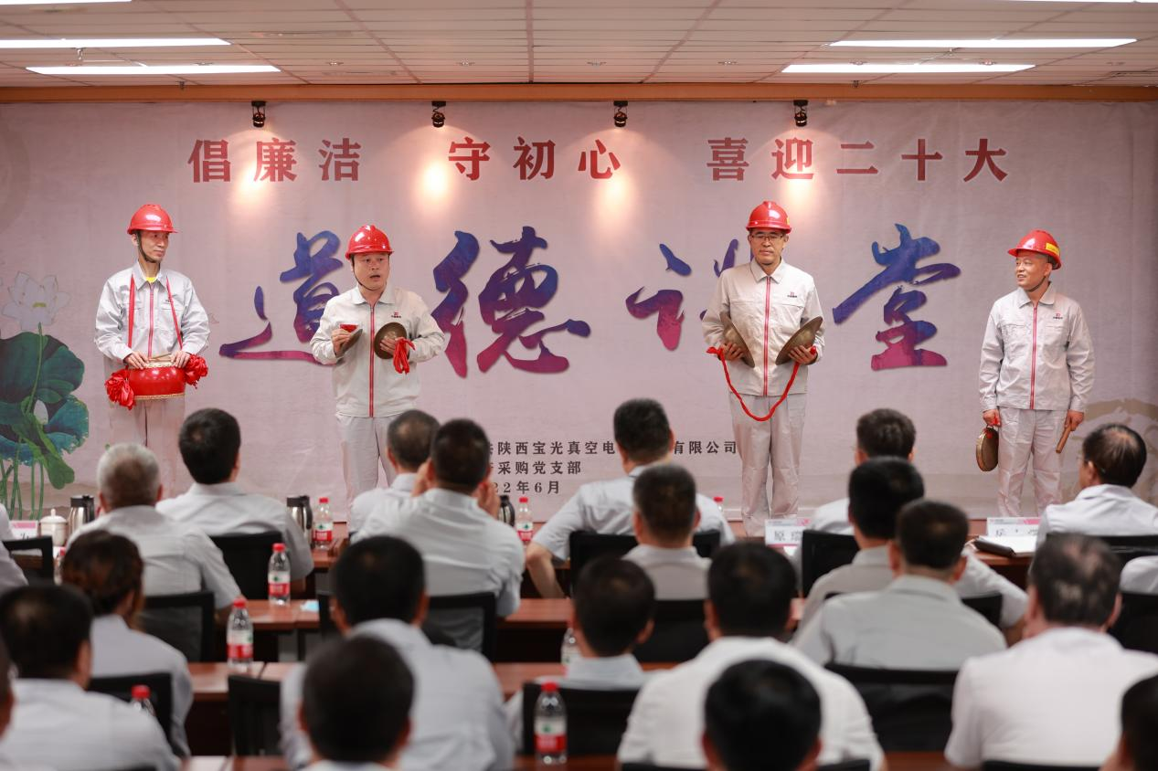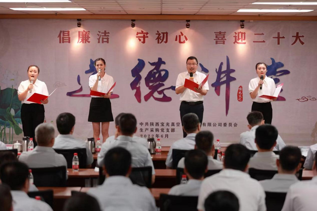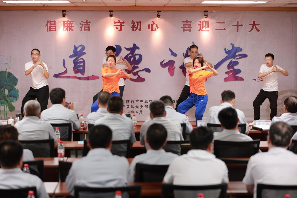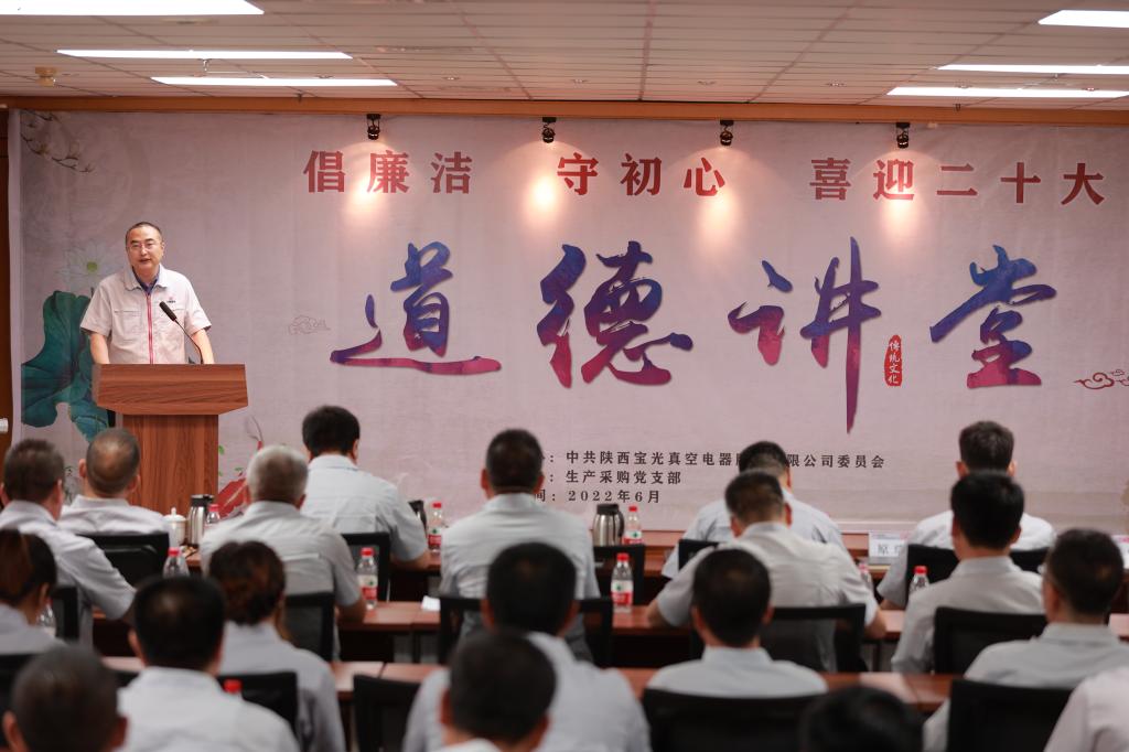 為將黨史學(xué)習(xí)教育不斷引向深入,全面提升廣大職工道德素養(yǎng),進(jìn)一步促進(jìn)企業(yè)精神文明建設(shè),切實(shí)激發(fā)廣大干部職工砥礪奮進(jìn)、爭(zhēng)開新局的信心和決心,以更加飽滿的工作熱情迎接建黨101周年和黨的二十大的勝利召開,6月28日下午,由寶光股份黨委主辦,生產(chǎn)采購黨支部承辦的“倡廉潔、守初心、喜迎二十大”主題道德講堂如期舉行。