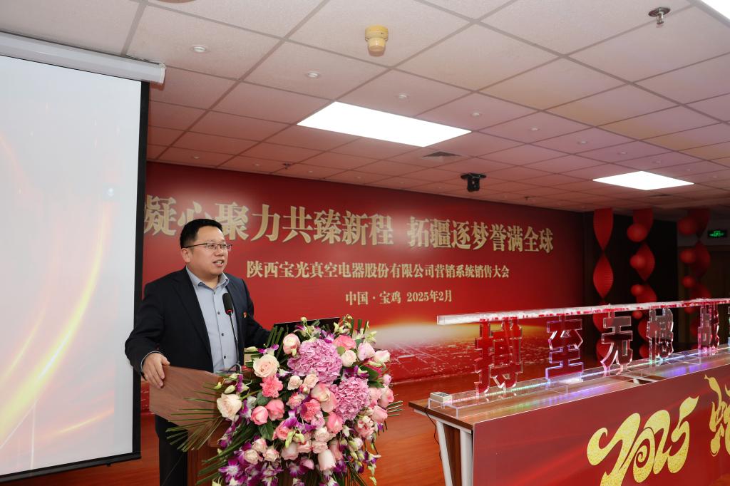 2月8日,寶光股份召開2025年銷售工作會議暨誓師大會。會議以習(xí)近平新時代中國特色社會主義思想為指導(dǎo),深入貫徹黨的二十大和二十屆二中、三中全會精神,認真落實公司2025年工作會議各項要求,全面總結(jié)2024年市場營銷工作,分析當(dāng)前形勢,安排部署2025年工作,為新一年的銷售工作吹響了奮進的號角。公司黨委書記、董事長謝洪濤,黨委副書記、總經(jīng)理劉壯出席會議并講話。