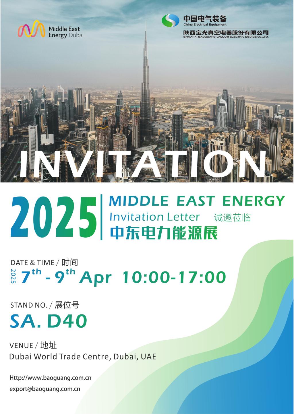 Middle East Energy 2025 will be held at the Dubai World Trade Center in the United Arab Emirates from April 7 to April 9. It is the most influential power and energy exhibition in the Middle East. The theme of this exhibition is "Shaping the Future of Energy in the Middle East and Africa".
