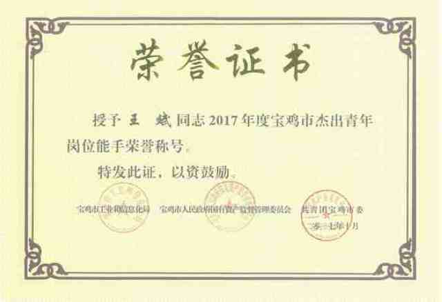王斌作為青年員工的杰出代表,他先后獲得西電集團先進生產者、寶光股份先進生產者,零件事業(yè)部勞動競賽三等獎等多項榮譽,所帶領的班組多次被評為公司以及事業(yè)部先進班組。