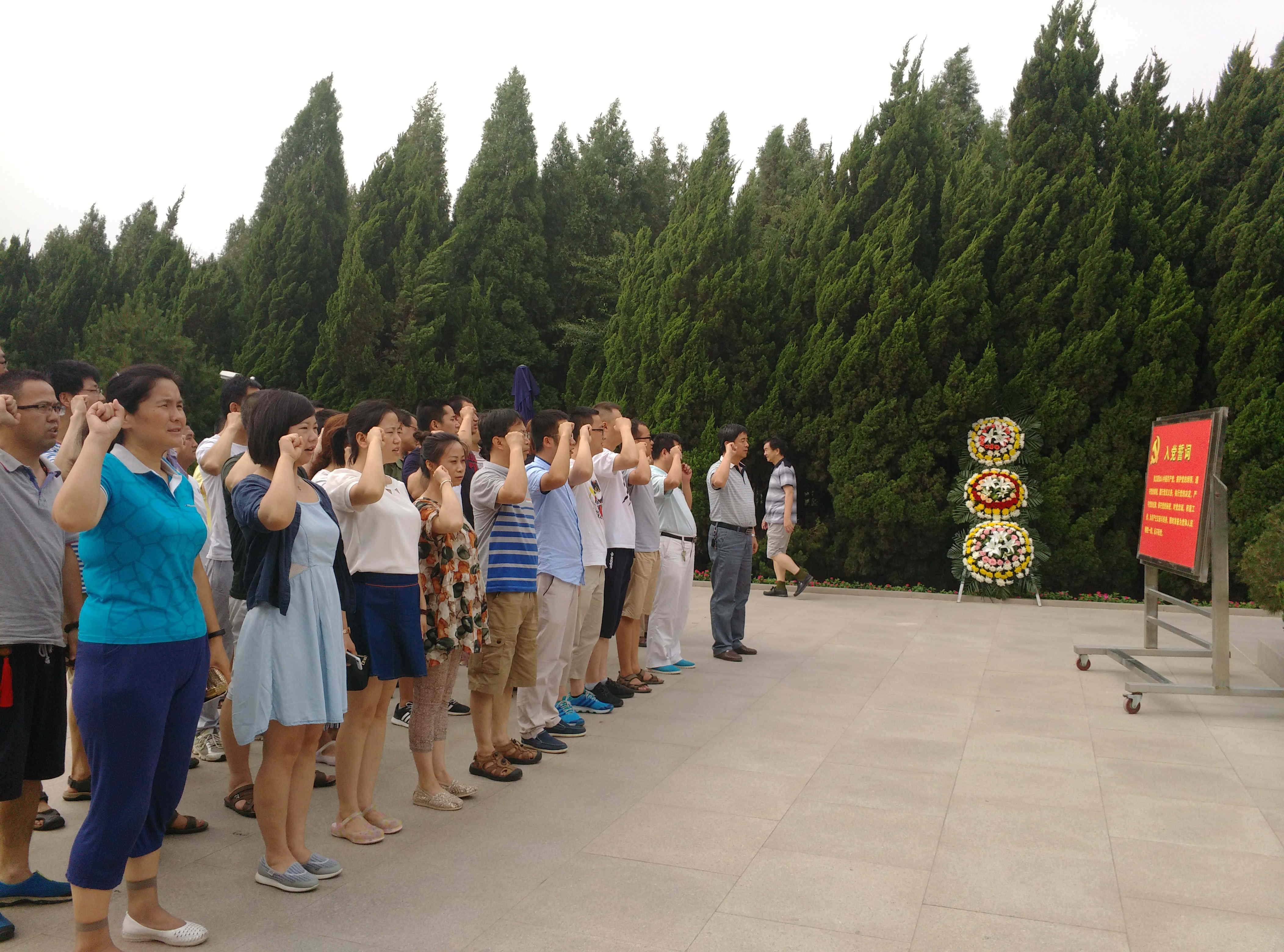 達(dá)到習(xí)仲勛陵園后,固封極柱事業(yè)部全體黨員,帶著無比崇敬的心情,列隊來到塑像前,莊嚴(yán)舉起右手,重溫了入黨誓詞,向革命先輩鞠躬敬禮,并在習(xí)仲勛雕像前合影紀(jì)念。