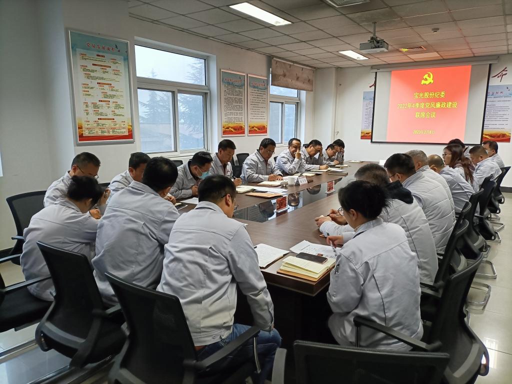 2月8日上午,寶光股份黨委召開了黨支部書記季度工作例會(huì)、黨風(fēng)廉政建設(shè)聯(lián)席會(huì)議。會(huì)上,集中學(xué)習(xí)了習(xí)近平總書記發(fā)表的署名文章《為實(shí)現(xiàn)黨的二十大確定的目標(biāo)任務(wù)而團(tuán)結(jié)奮斗》以及寶光集團(tuán)黨委《關(guān)于召開2022年度基層黨支部組織生活會(huì)及開展民主評(píng)議黨員工作的通知》;通報(bào)了2022年四季度基層黨支部黨建工作督查情況和基層黨支部考核結(jié)果;圍繞2023年黨建工作提升開展了座談交流。寶光股份黨委委員、紀(jì)委書記姚書勤主持會(huì)議并講話,黨支部書記及黨委工作部門負(fù)責(zé)人參加了會(huì)議。