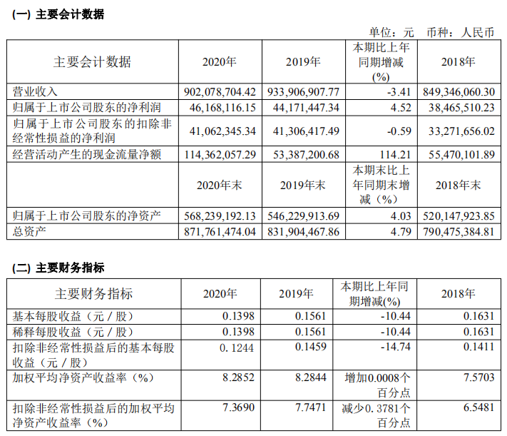 寶光股份2020年年度主要財務(wù)指標